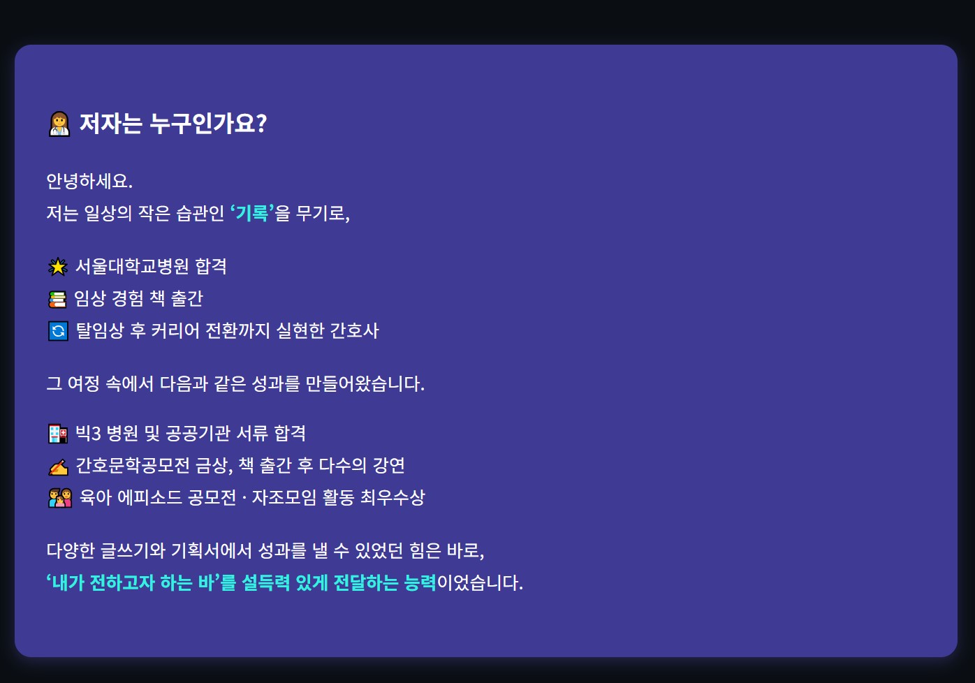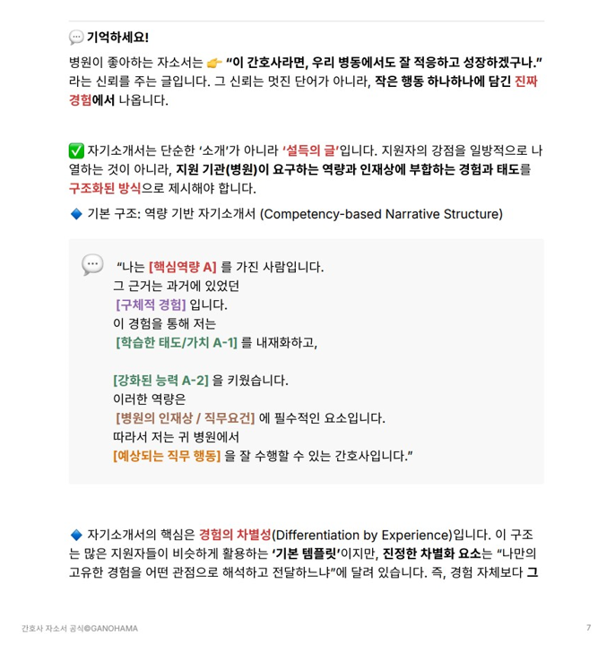 “내가 왜 간호사가 되었는지”, “왜 이 병원이 나와 맞는지”를 설명하는 강력한 언어가 되어줄 거예요.